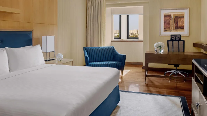 The InterContinental Riyadh’s six floors are home to 275 guest rooms and suites, many of which boast exquisite views of the city or golf course.
