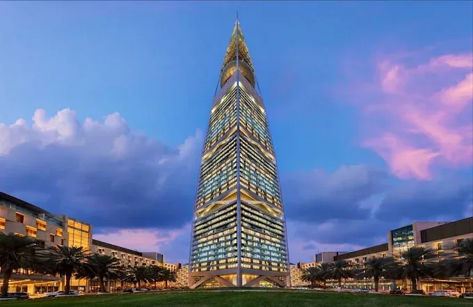 Standing tall at 267 meters with 55 floors, Al Faisaliyah Center (مركز الفيصلية) made history as Saudi Arabia’s first skyscraper. Its sleek pyramid design and golden observation sphere have made it an unmissable part of Riyadh’s skyline since its completion in 2000.
