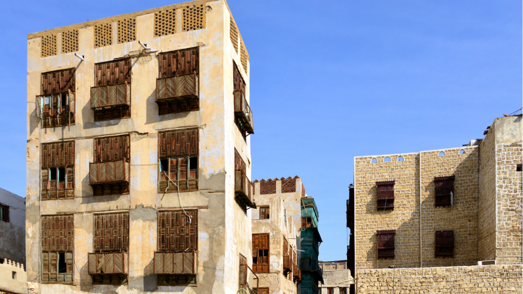 The buildings in Al-Balad are very old. They are made from coral stones and wood. This is different from the tall glass buildings you see in new cities. The coral stones help keep the houses cool. The wood is carved into beautiful shapes. You will notice the wooden windows called “mashrabiya” (مشربية). These windows are special. They let air come in but keep the sun and heat out. They also give people privacy. When you look at these windows, you see the skill of old builders. They made the houses strong and beautiful.